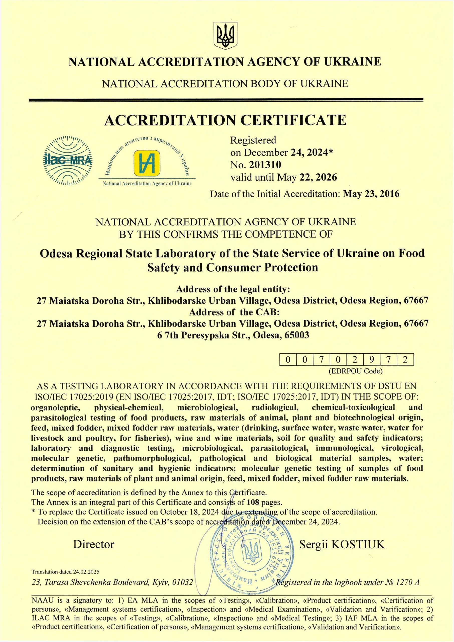 ЄДРПОУ: 00702972 тел: (048) 705-3097 MailTo: odregionlab@ukr.net 67667, Одеський район, Одеська обл., смт. Хлібодарське, вул. Маяцька дорога, буд.27